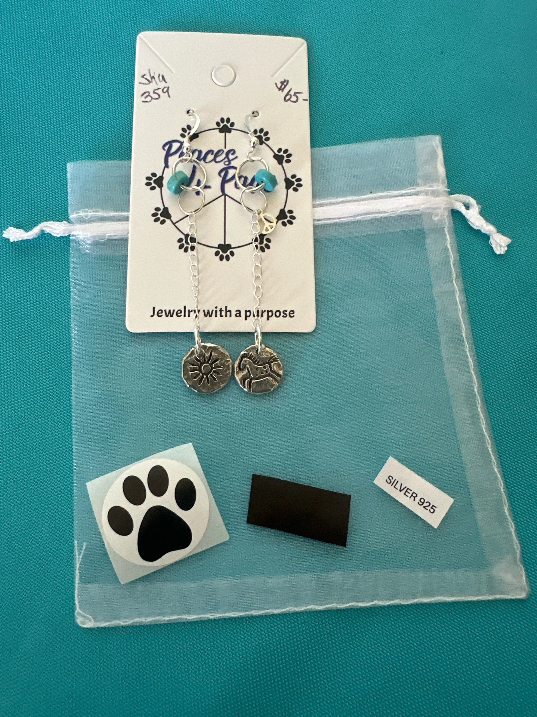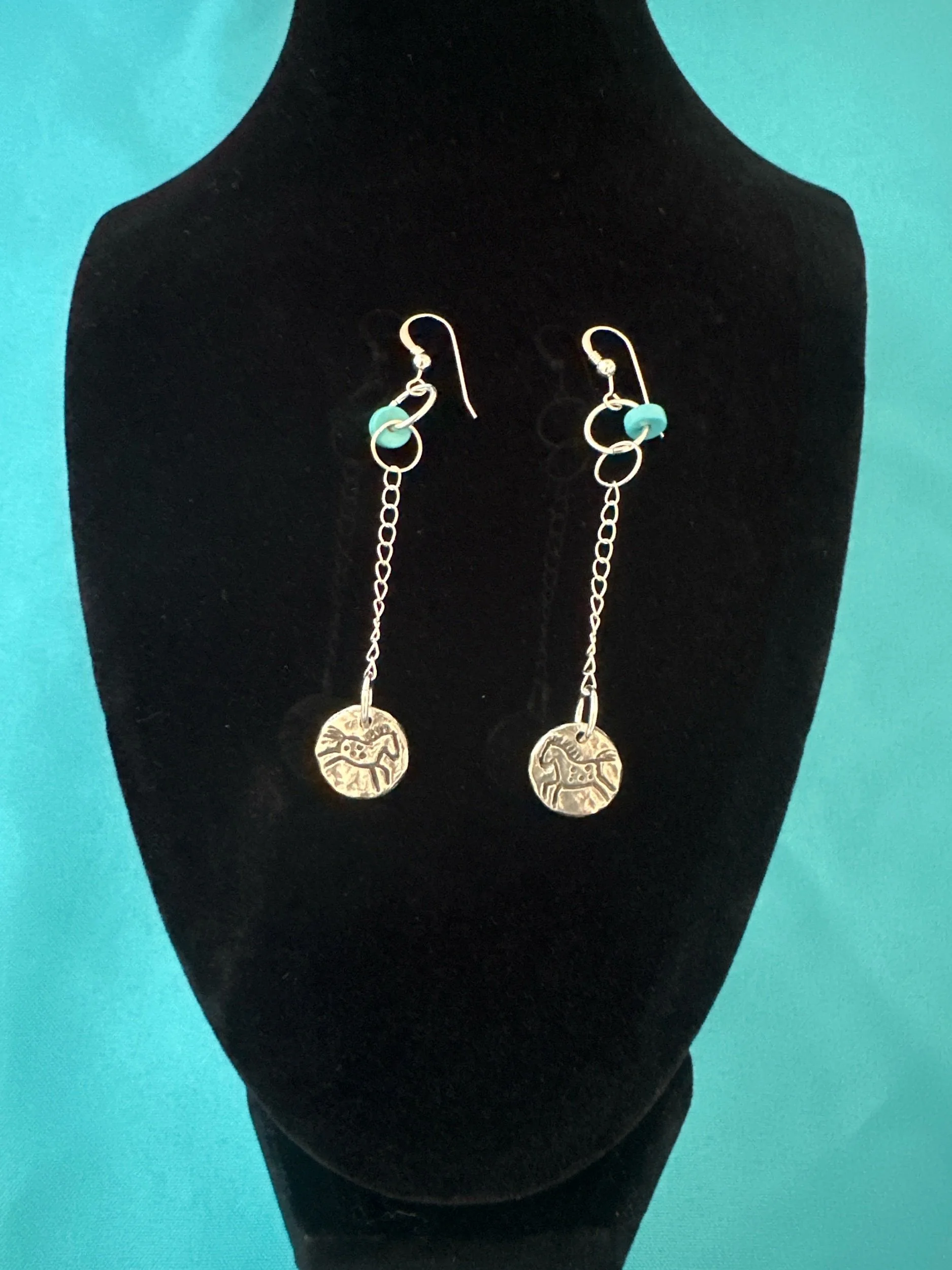 Running horses, stamped on pewter, hang from sterling silver chains.