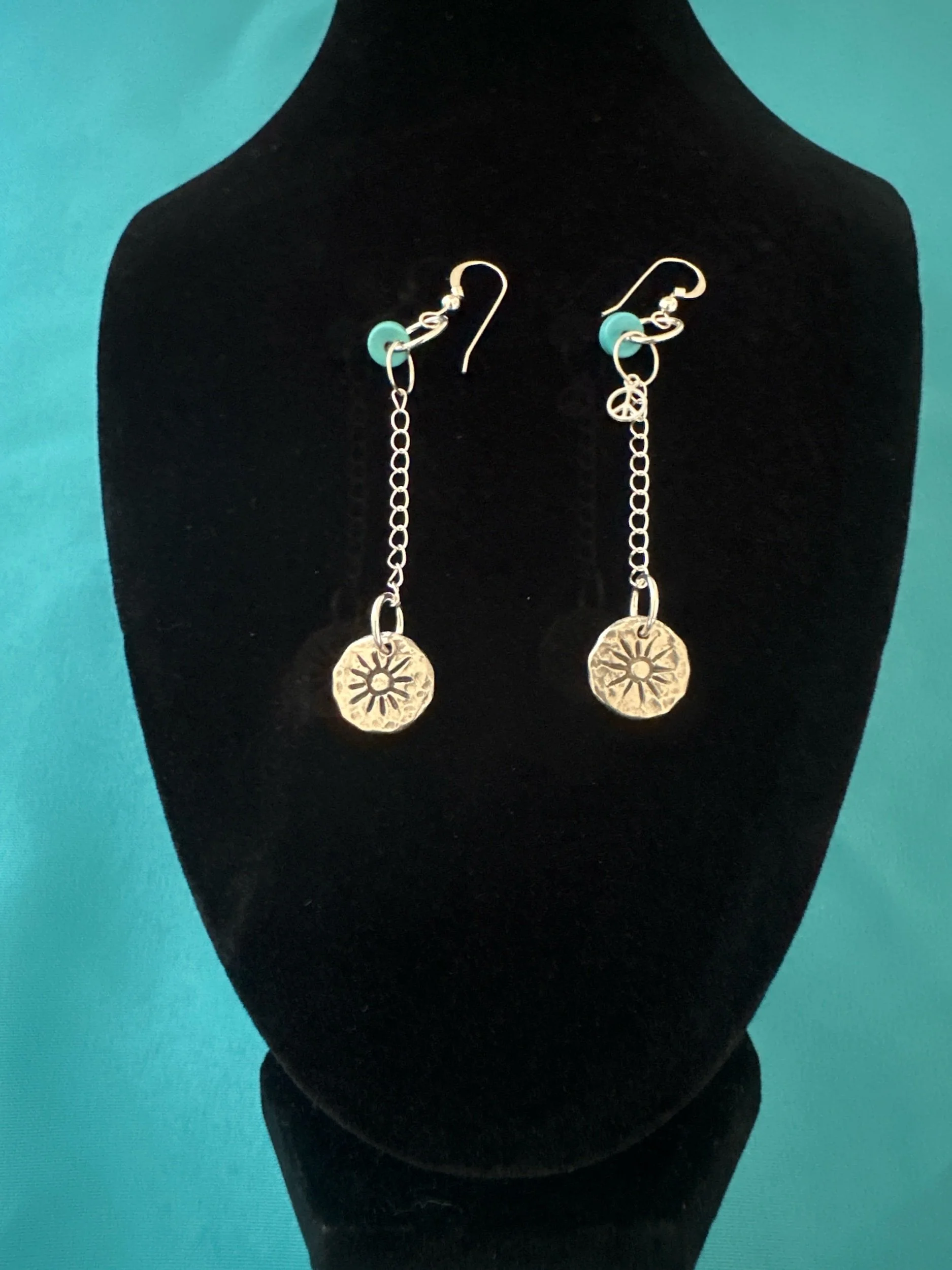 Sterling silver rings and ear wires, are decorated with “Turquoise” (Howlite) beads.