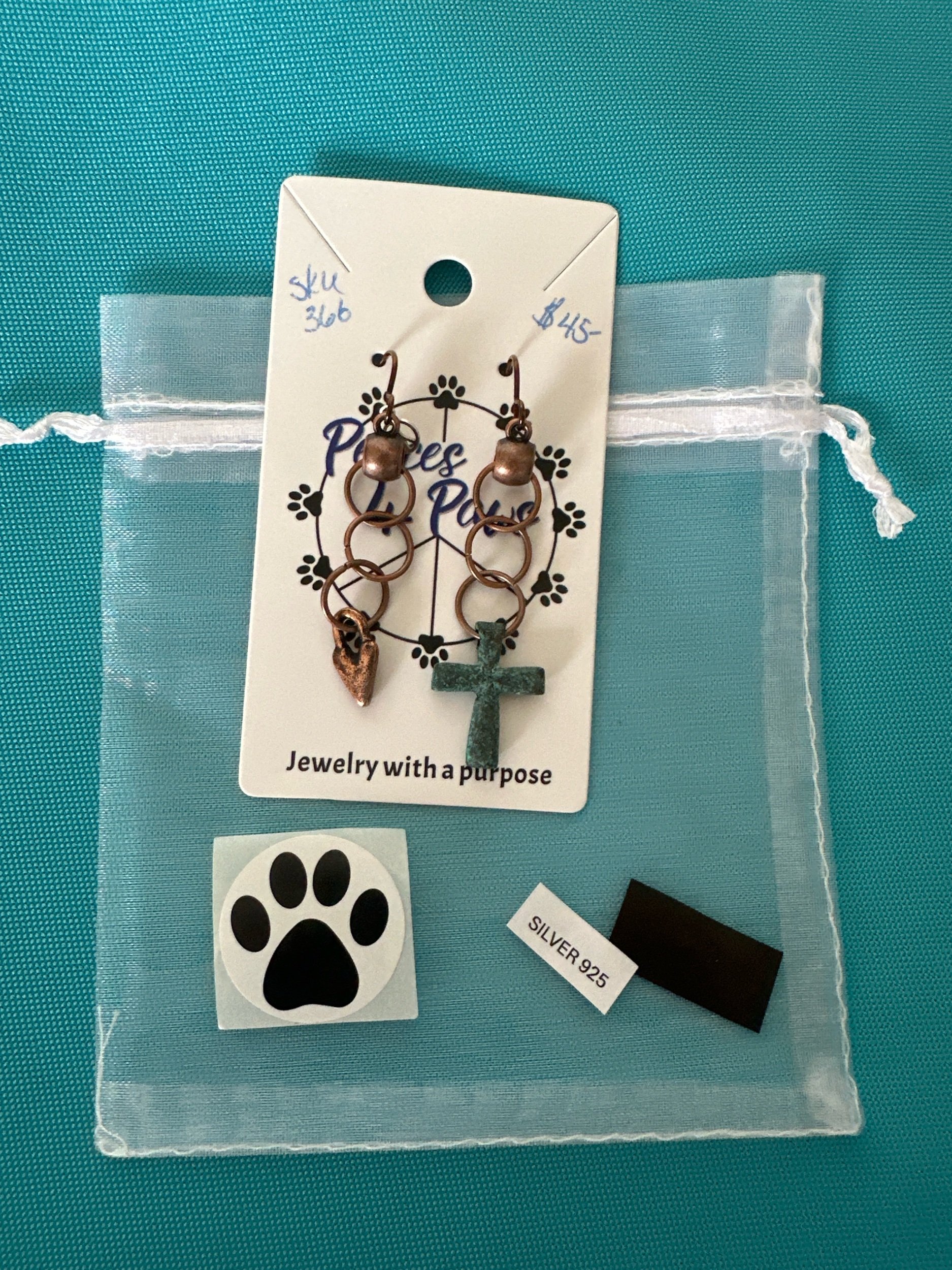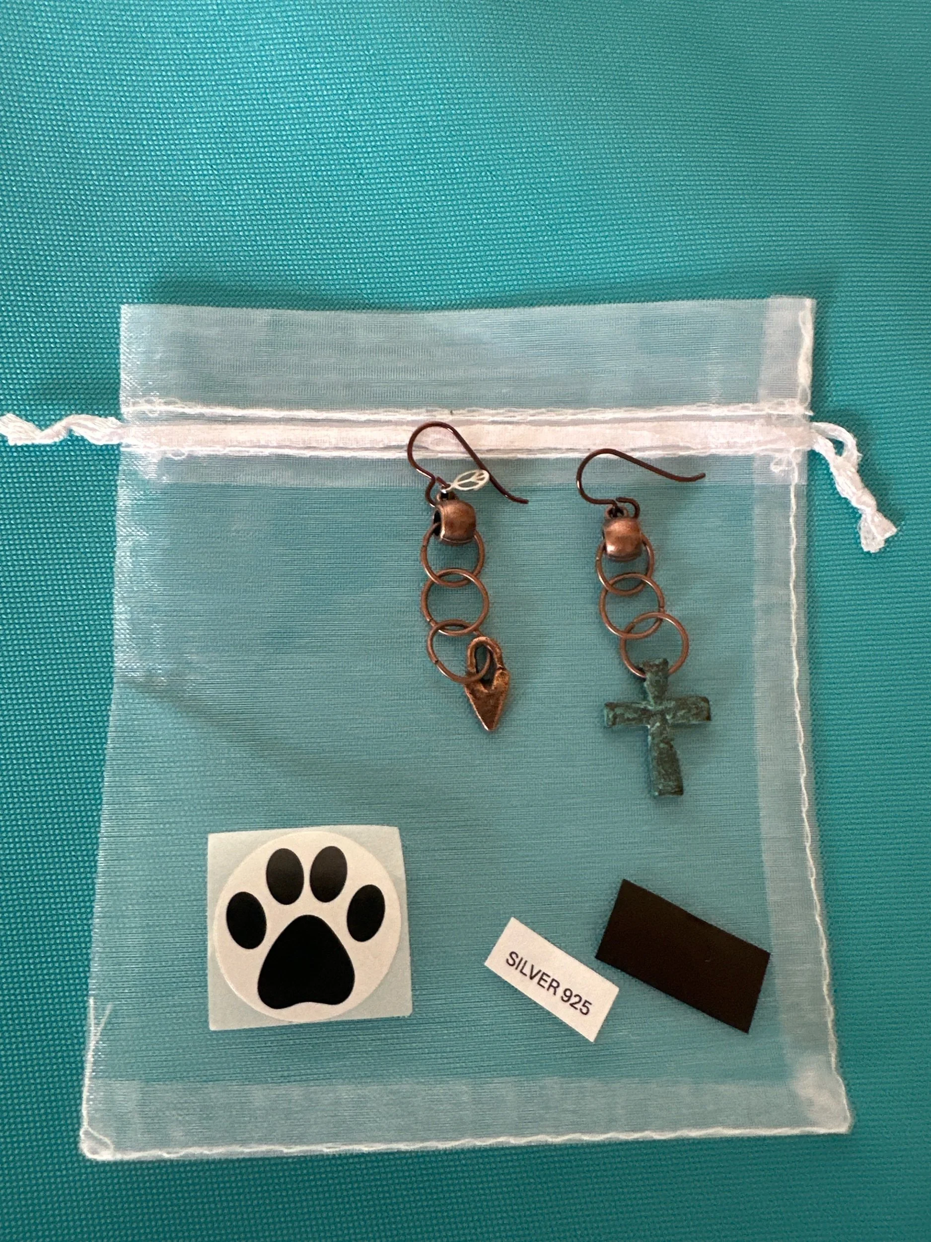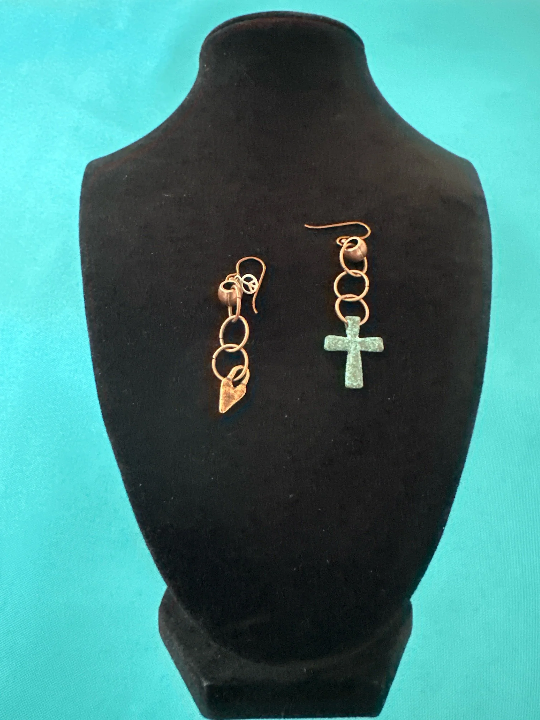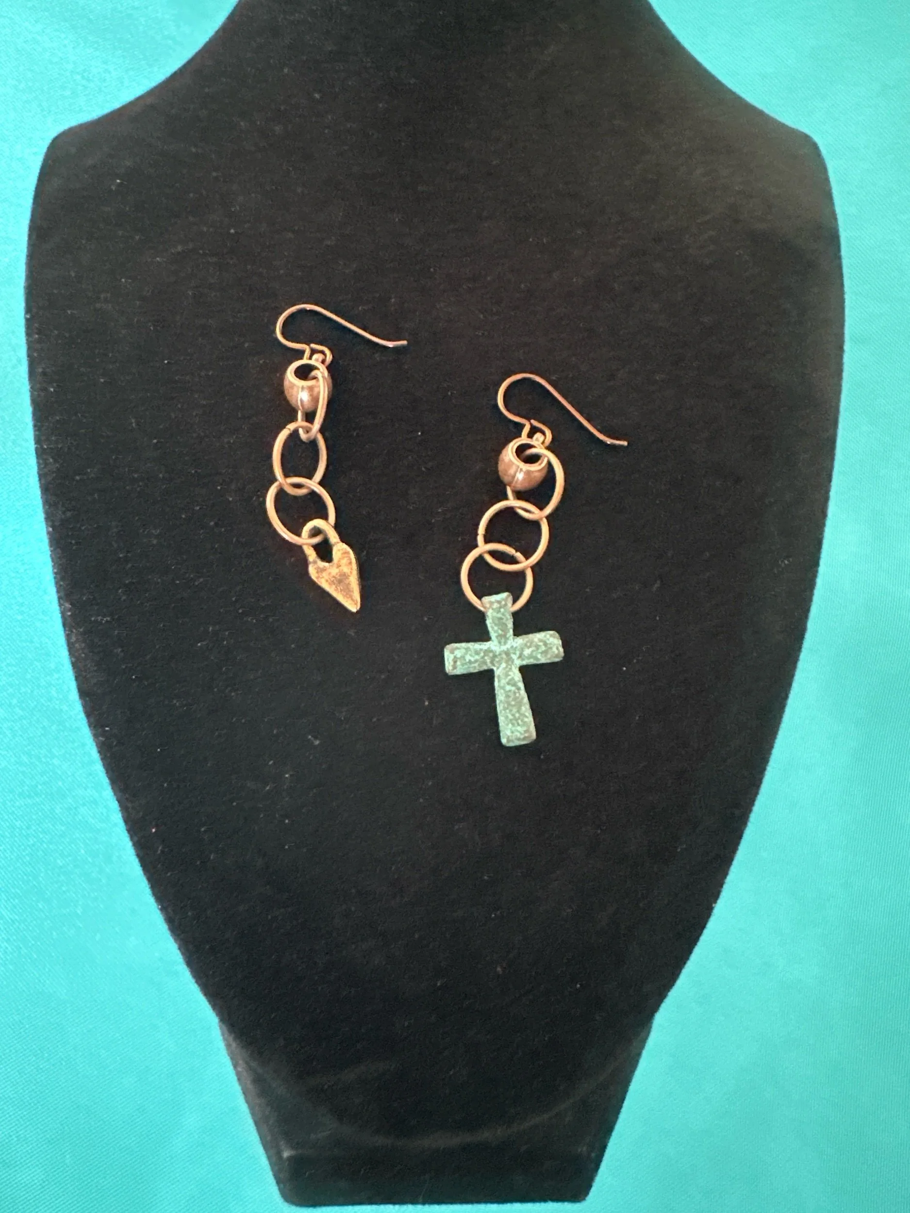 A small copper heart and a patina cross, make the cutest combination of earrings!